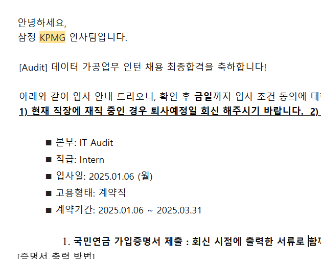 최종적으로 KPMG IT Audit으로 합류하게 되었다 !